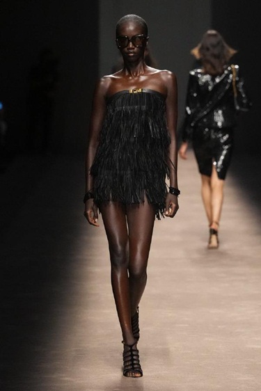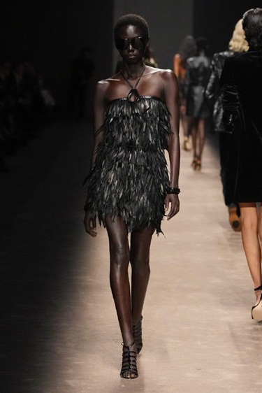 الفستان الأسود والسهرات الصاخبة متردافان لا يفترقان. ومن هذا المنطلق، حرصت العديد من دور الأزياء الى تقديم فساتين السهرة اللامعة باللون الأسود المفضل لدى السيدات، مثل Rabanne المستوحى من المحاربات، وفستان Tom Ford المزين بالريش. هذه التصاميم تليق بالمرأة الجريئة التي لا تخاف المغامرة في إطلالاتها، وتبحث دائماً عن القطع المميزة التي تعكس حبها للابتكار وعدم خوفها من جذب الأضواء.