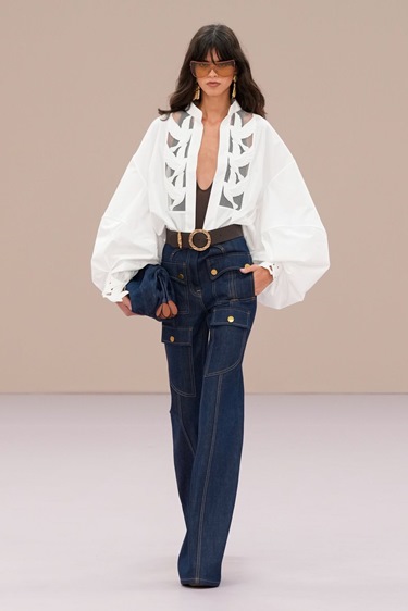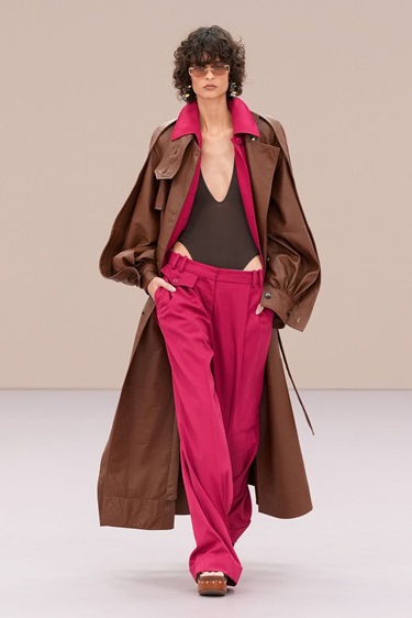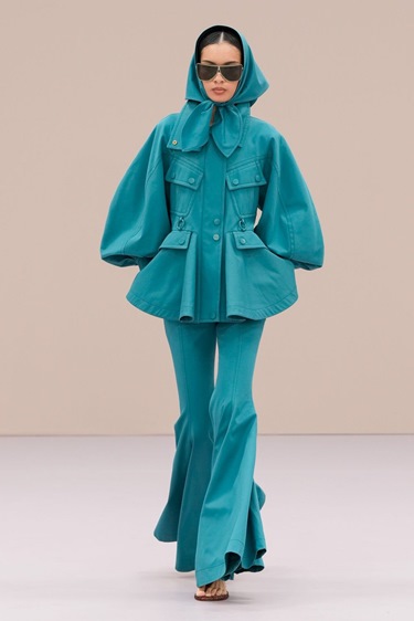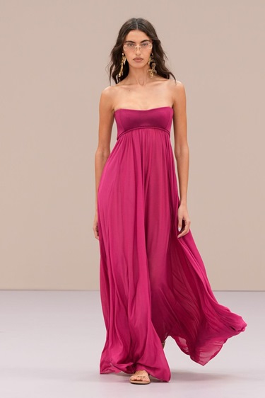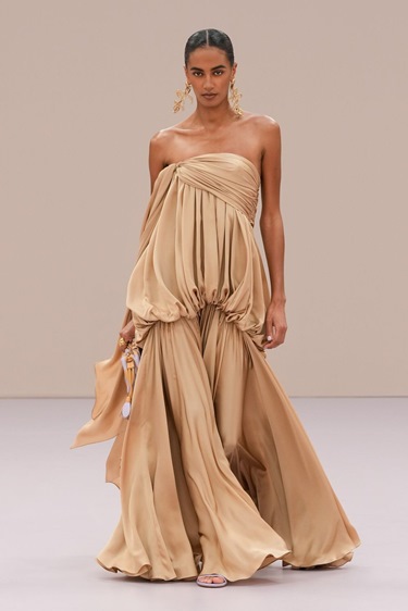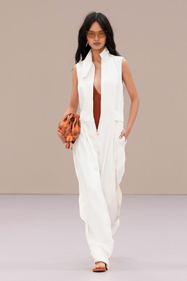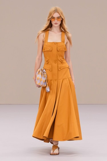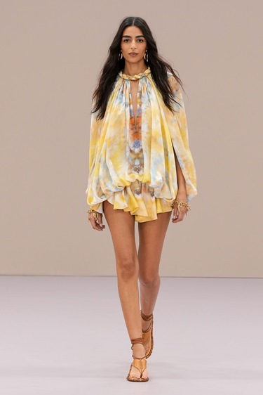 لكن العرض لم يقتصر على فساتين المنتجعات التي اشتهرت بها الدار. فقد ظهرت قمصان بيضاء حادة القَصّة، مرسومة عليها زخارف طيور بخيوط مطرزة بدقة، جمعت بين الانضباط والحرية الإبداعية في الوقت نفسه. معطف طويل من الجلد أضاف نكهة حضرية، بينما بدت ملابس السباحة بألوان ترابية وكأنها تتحوّل إلى قطع عصرية يمكن ارتدائها تحت سراويل عملية أو تنانير واسعة. هذه التنقلات بين اليومي والاحتفالي، بين الأستوديو والشاطئ، عكست رؤية لامرأة لا تُقيَّد بمكان أو لحظة محددة.