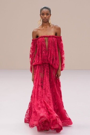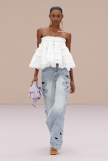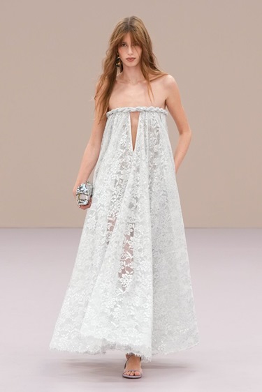 ولعل المفاجأة كانت في استعارة بعض اللمسات الرجالية من أرشيف صور لافندر باي: سترات عمل ناعمة الأكتاف، سراويل واسعة الساقين، وجيوب مستوحاة من أزياء السبعينيات العملية. هذه العناصر وفرت توازناً لنعومة الأورغانزا والتول، وأبرزت قدرة المصممة على المزاوجة بين البنية الصارمة والانسيابية الحالمة. بدا وكأن زيمرمان تسعى إلى إعادة صياغة رموزها الخاصة، لا مجرد تكرارها، لتؤكد أن النوستالجيا عندها لا تعني الوقوع في فخ الحنين الساذج، بل استحضار الماضي بروح معاصرة.