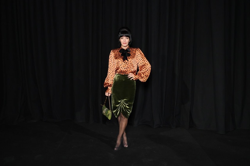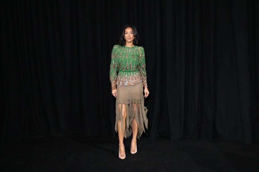 الصفوف الأماميية لم تقلّ بريقاً عن العرض نفسه، إذ حضرت كوكبة من النجمات العالميات اللواتي جسّدن روح الدار بإطلالات مدروسة. تايلا خطفت الأنظار بفستان قصير مطرّز بتفاصيل دقيقة مع ذيل انسيابي أضفى لمسة درامية حالمة. داكوتا جونسون اختارت إطلالة تجمع بين الجرأة والرقي، من خلال فستان قصير بلمسات ذهبية يعكس شخصية فالنتينو الجريئة والناعمة في آن.