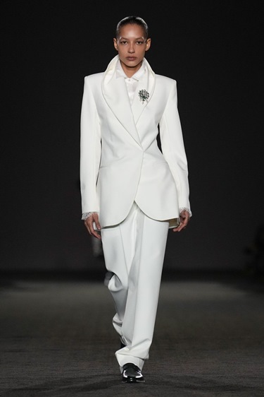 هذا الحوار بين مرجعيتين روحيتين مختلفتين لم يكن صدامياً، بل تكاملياً. في كل إطلالة، كان هناك أثر لماضي ما، لكن بصياغة معاصرة تُبقي القطعة قابلة للحياة خارج سياقها الرمزي. غورونغ يعرف جمهوره جيداً، نساء يبحثن عن حضور قوي من دون أن يتخلّين عن حساسيتهن. لذلك ظلّت القصّات أنيقة، والسهرة حاضرة، واللمسة الدرامية محسوبة بدقة.