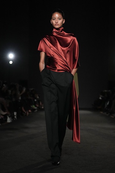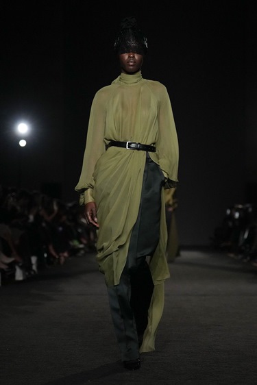 هنا، لم تكن الذاكرة مادة خاماً للزينة، بل أداة تفكير. غورونغ لم يبحث عن صورة جاهزة لبلد المنشأ، بل عن إحساس داخلي بالقوة يتكوّن حين تتقاطع الروحانية مع التجربة الشخصية. الحجاب الذي غطّى الوجه لم يكن رمزاً للإخفاء، بل دعوة للنظر إلى الداخل، إلى ما يبقى حين تتعرّى الضوضاء الخارجية. في هذه البداية، أعلن المصمّم أن عرضه ليس احتفالاً بالماضي بقدر ما هو مساءلة له.