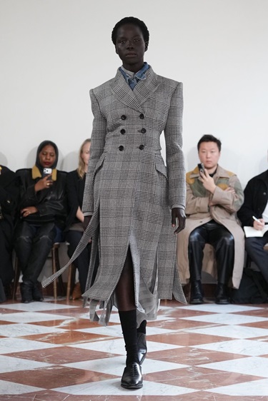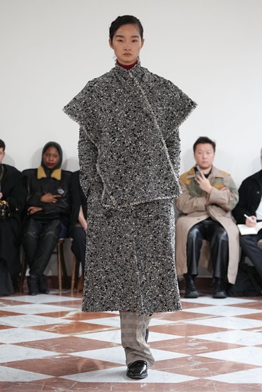 الملمس لعب دوراً محورياً في صياغة المشهد العام. معاطف وجاكيتات من الشيرلينغ، لمسات من الريش المهترئ، وفرو صناعي كثيف، بدت وكأنها مكتشفة في سوق عتيق ثم أُعيد تنسيقها بذكاء. لدى JW Anderson وBurberry، تداخلت هذه الخامات مع خياطة دقيقة ومعاطف ترنش كلاسيكية، في مزج بين الفوضى المقصودة والانضباط البريطاني المعروف. الفكرة لم تكن في الكمال، بل في الشخصية.