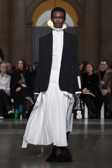 التنانير الواسعة عادت بقوة أيضاً، فيما يمكن تسميته بصيحة الامتداد الكامل. قصّات ميدي وطويلة حتى الأرض، تدور حول الساقين بحجم واضح من دون أن تبدو جامدة. لدى Roksanda وErdem، قُدمت هذه التنانير مع كنزات بسيطة أو ضمن فساتين مسائية ببنية محكمة، لتؤكد أن الدراما لا تعني المبالغة. الحركة نفسها أصبحت جزءاً من التصميم، فكل خطوة تحوّلت إلى مشهد.