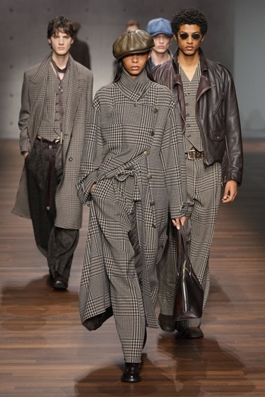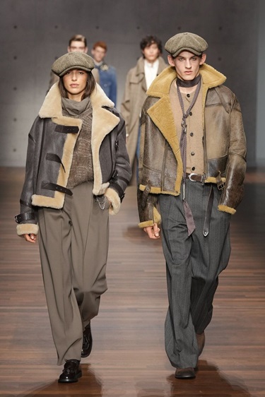هناك لمسة سبعينية خفيفة تكمن في: الياقات العريضة، المزج بين الجلد والبني والبيج، الروح البوهيمية المنضبطة، لكنها هنا أكثر تهذيباً وأقل درامية.