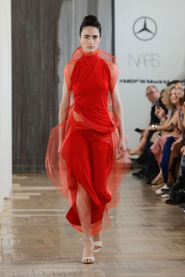التصاميم بدت بسيطة للوهلة الأولى، لكنها تكشف تعقيدها الحقيقي عند الحركة. ركّز ألفونسو بيريز على إبراز البنية الداخلية للقطعة وتحويلها إلى عنصر جمالي ظاهر، ما أضفى بعداً نحتياً على العديد من الإطلالات. كما اعتمد على خياطة دقيقة تعزّز الطول والرشاقة، مع توازن واضح بين الصلابة والانسيابية في بعض القطع.