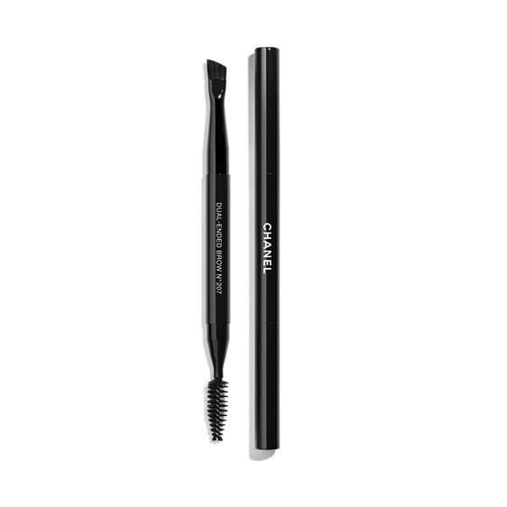 الحواجب حُددت بلطف عبر Stylo Sourcils Haute Précision وأُعيد ترتيبها بواسطة Pinceau Duo Sourcils N°207، لتبدو مشذبة لكنها طبيعية، تعكس شخصية العارضة أكثر من كونها مرسومة بدقة.