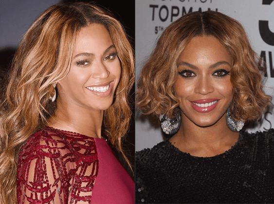 بيونسيه: قصت بيونسيه شعرها عدة مرات هذا العام، في البداية اعتمدت الغرة القصيرة مع لون الشعر الأشقر، لكنها لم تكن إطلالة موفقة لذا قصّت بعد فترة قصيرة جداً شعرها إلى الأذنين مع تمويجه Wavy Bob وبدت فيها أجمل بكثير.