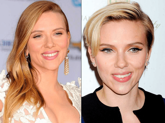 سكارليت جوهانسن: في خطوة جريئة صادمة قرّرت سكارليت بعد وضعها لطفلتها قص شعرها الأشقر الطويل إلى تسريحة قصيرة جداً لكننا نعتقد أنها تبدو أجمل بالشعر الطويل.