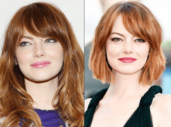 إيما ستون: إيما ستون تملك شعراً كثيفاً باللون الأحمر ميّزها عن باقي النجمات، لكنها اختارت بشجاعة قصّه إلى الأذنين Choppy Bob، مع اعتماد غرة جانبية. هذه التسريحة أظهرت وجهها أكثر و أكثر، و هي من أجمل تسريحات شعر هذا العام.