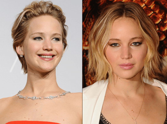 جينيفر لورانس: على عكس باقي النجمات، قررت جنيفر تغيير تسريحة شعرها القصيرة وتركه لينمو من جديد، فظهرت بلوك مختلف أقرب لتسريحة الـWavy Bob الرائجة.
