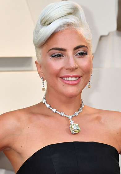 - ليدي غاغا: لا تتوقف الليدي غاغا عن إذهالنا في كلّ إطلالة لها! فالنجمة الحائزة جميع الجوائز في هذا الموسم بالإضافة إلى جائزة الأوسكار، ظهرت برونزية السحنة مع شعر أشقر سرّحته في رفعة متميّزة. هذا اللوك استوحته غاغا من النجمة أودري هيبورن ولوكها في Breakfast at Tiffany's حتى أنها ارتدت الحجر الكريم نفسه في رقبتها!