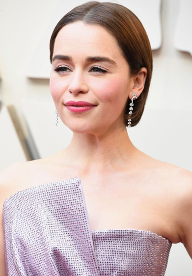 - إميليا كلارك: كلارك اعتمدت لون شعر جديد على سجادة الأوسكار الحمراء. بالعودة إلى لون شعرها الأساسي، صبغت نجمة Game of Thrones شعرها باللون البني الكستنائي، وأسدلته مع فرق وسطي.