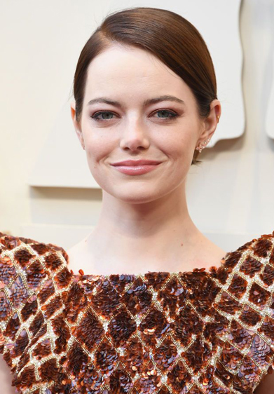 - إيما ستون: عينا إيما ستون تناغمتا مع شعرها وفستانها من لويس فويتون. تدرّجات اللون البني طغت على لوك ستون.