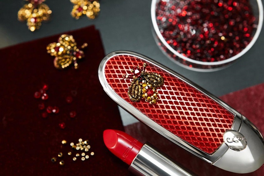 في تحية منه للنحل، رمز دار غيرلان الأيقوني، أعاد "باكيه موليني" Baqué Molinié - استوديو التطريز الباريسي الذي يتعاون مع أشهر الحرفيين – تصور وتفسير النحلة كلها باللآلئ الحمراء والذهبية، وتطريزها على غلاف مخملي مزين بتصميم قرص العسل الأحمر. كل أحمر شفاه مرقّم بشكل فردي يتم تقديمه ضمن مجموعة فريدة من نوعها لتشكيل هدية استثنائية.