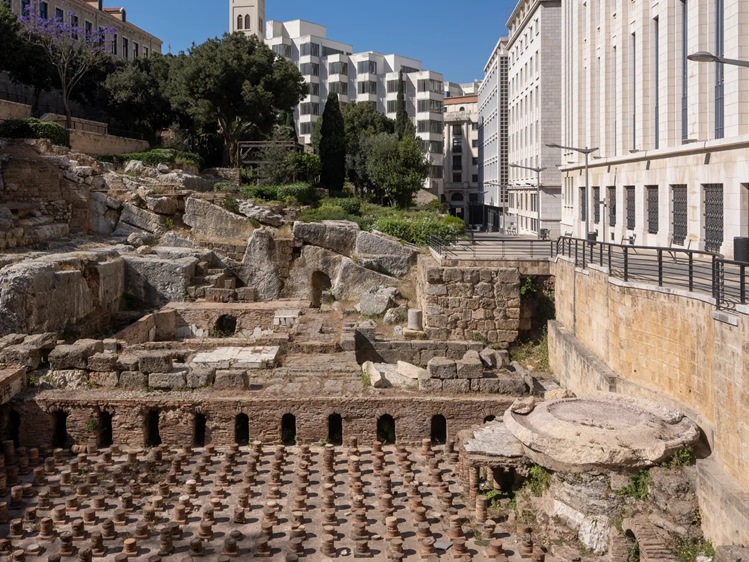 وفي موقع الحمّامات الرومانية أيضاً، عرضت المهندسة سرين حسنية عملها Fluvia، مقعد رخامي يمتدّ بطول سبعة أمتار يجمع بين الشعر المعماري والوظيفة، مستلهماً إيقاع الماء وحركته في تصميم هندسي يتنفس من خلال الفتحات الهوائية الدقيقة، جامعاً بين التاريخ والحداثة في تناغم آسر.