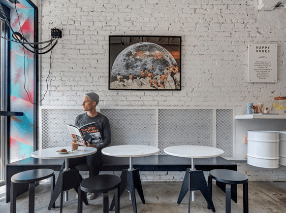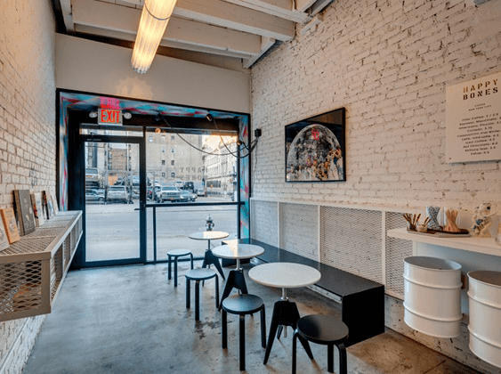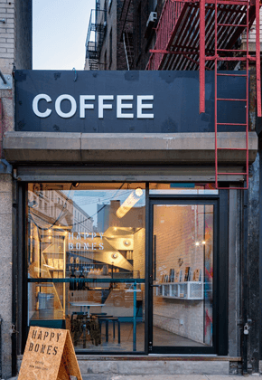 في شوارع نيويورك المزدحمة، ستجدين مقهى Happy Bones الجميل الذي استقرّ في زقاق ضيّق! في الواقع، هذه المساحة كانت زقاقاً صغيراً يفصل بين مبنين. نفّذ هذا المشروع من قبل UM Project و Ghislaine Viñas Interior Design.