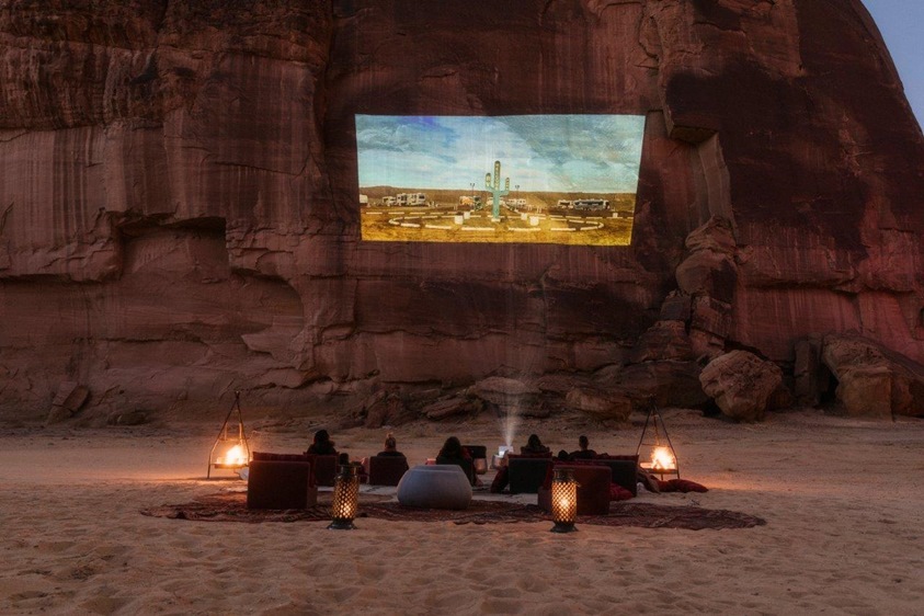 وستكون تلك السينما في الهواء الطلق مختلفة تماماً عن أي ليلة عادية لمشاهدة الأفلام، فهي تمنح الزائرين الفرصة للتأمل وإثراء عقولهم في فسحة واسعة واستثنائية من الطبيعة، تحت أضواء القمر الساطع والنجوم المشعة في الصحراء الشاسعة في مسرح يتخلله مجلس مريح يحاكي المجالس العربية ويُقدّم الفشار والمرطبات اللذيذة. سنعيد إلى الضيوف حنيناً إلى الماضي بعرض الأفلام الكلاسيكية على خلفية مميزة من الحجر الرملي.