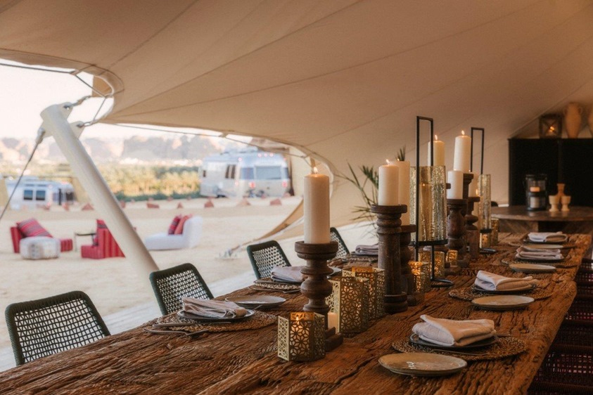 ولا تنسوا أن في كرافان العلا يوفر لكم مجموعة فريدة ومتميزة من غرف الإقامة مكيفةً وكل منها لها إطلالة مميزة وخلابة وسطح خارجي بباب خاص وأسرّة كبيرة أو سريران فرديان وحجرة معيشة داخلية ومطبخ صغير مزود بوجبات صغيرة وحمام والواي فاي ونظام صوتي لتوفير كل سبل الراحة لنزلائنا. أما بالنسبة للتنقل بين المناطق، فوفرنا دراجات كهربائية تناسب الأجواء مع مساحة كبيرة للاستمتاع بالأجواء حيث يمكن للضيوف أن يلتقوا أو يلعبوا بمجموعة من الألعاب الكلاسيكية وتعزيز التواصل الإنساني معاً.
