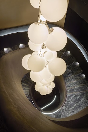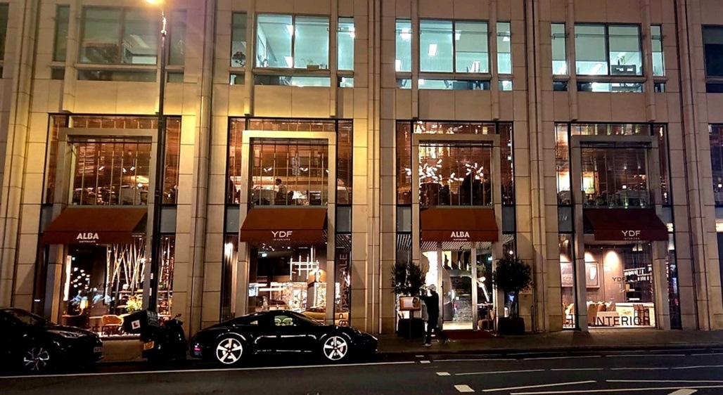 في الطابق الأرضي من المبنى الذي يحتضن مطعم "ألبا"، ستجدون أنفسكم داخل صالة عرضYDF Interiors التي لها شراكة مع أرقى الماركات العالمية في عالم الأثاث، والإضاءه، والحمامات، والمطابخ، والمنسوجات. وعندها سترحب بكم موظفة الإستقبال في المطعم، وتدعوكم إلى تسلق أدراج نصف دائرية مكسوّة بالرخام الزيتي، تُضيئها ثريّا خلّابة تتدلّى من أعلى إلى أسفل كأنها سلسلة من البالونات البيضاء. وفور وصولكم إلى الطابق الأول حيث يقع المطعم، ستشعرون وكأنكم على مشارف عيش "الحياة الحلوة" بأدق تفاصيلها.