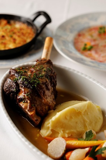 محطات للتقطيع تقدم أضلاع لحم البقر المطهوة على مهل مع صلصة إكليل الجبل، وسمك الكنعد الكامل مع صلصة الزعفران.