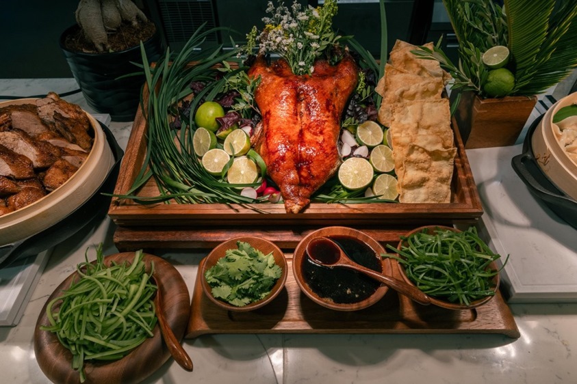 ثمّ تُقدَّم تشكيلة أنيقة من الديم سوم، تضمّ دمبلينغ "هار كاو" الذهبية بالروبيان، و دمبلينغ "شياو لونغ باو"، ولفائف السبرينغ رولز المقرمشة، قبل أن تُقدَّم الأطباق الرئيسية ضمن مائدة متوازنة وسخيّة. تشمل الأطباق المميّزة روبيان كونغ باو، والدجاج بصلصة الفاصوليا السوداء، والباذنجان المطهوّ مع التوفو في قدر من الطين، وتُقدَّم جميعها إلى جانب أرزّ مقلي بالبيض تفوح منه الروائح الزكية، لتجسّد لحظة عامرة بنكهات المطبخ الكانتوني الكلاسيكي.
