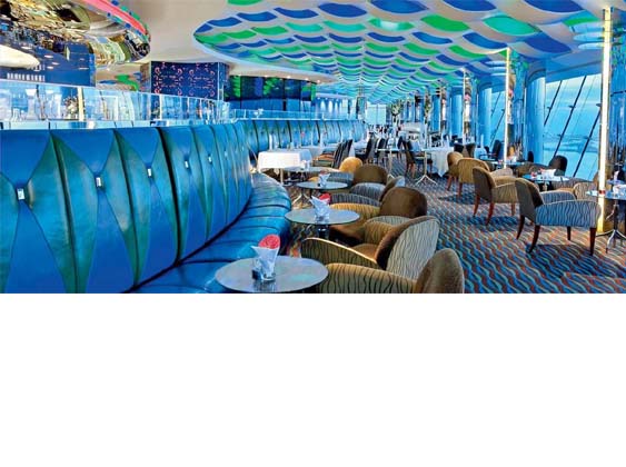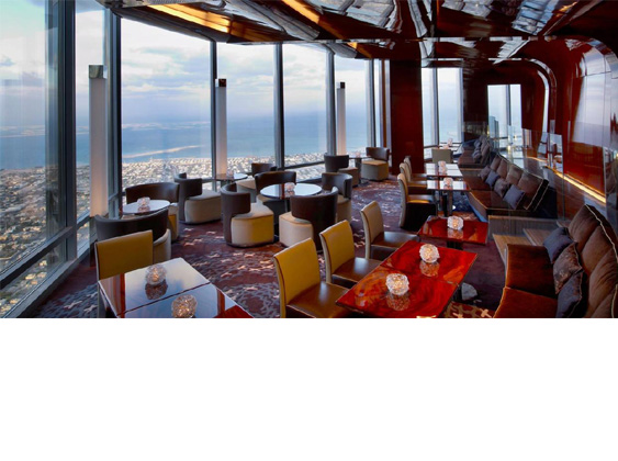 يطل هذا اللاونج أيضاً على أجمل مناظر دبي، حيث يقدم الشاي الإنجليزي في فترة ما بعد الظهر ويطلق عليه اسم سكاي تي. ولا تفوتي تذوق الساندويتشات والحلوى الشهية التي تأتيك على شكل قوالب على شكل مبنى برج العرب.