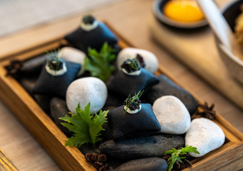 وتشتهر قائمة طعام بلو بلانك التي تم تجديدها أخيراً بتقديم أجود أنواع المحار، التي تشمل محار Pink Tarbouriech المخملي ومحار Dibba Bay والتي تقدم مع صوص مينيونيت الأرز والخل ومعجون يوزو بيرلز ومعجون الهالبينو غرانيت. وتشمل القائمة أيضاً مجموعة من المقبلات الشهية مثل تارتار لحم البقر المجفف الذي يقدم مع الباذنجان المدخن والأيولي وسلطة كينج كراب المغطاة بالخضروات الطازجة والأفوكادو الناعم وبيض سمك السلمون وجرجير الماء الطازج. وبالنسبة إلى الوجبات الرئيسة، يقدم المطعم تشكيلة مختارة من اللحوم الطرية مثل أضلاع لحم الضأن المزينة بشكل رائع مع ميل فوي البطاطا والكريمة الطازجة، بالإضافة إلى طبق كونفيت البط المزين بالخس الصغير المدخن والمغطى بصلصة البرتقال. كذلك تشمل القائمة غنوتشي البطاطا المليئة بفطر الغابة والكمأة السوداء والمغطاة بجبن البارميزان. ويقدم المطعم أيضاً مجموعة من الحلويات الشهية لاختتام الوجبات بنحو مثالي بما في ذلك غاناش الشوكولاتة أراغواني التي تقدم مع شربات التوت الكريمي.