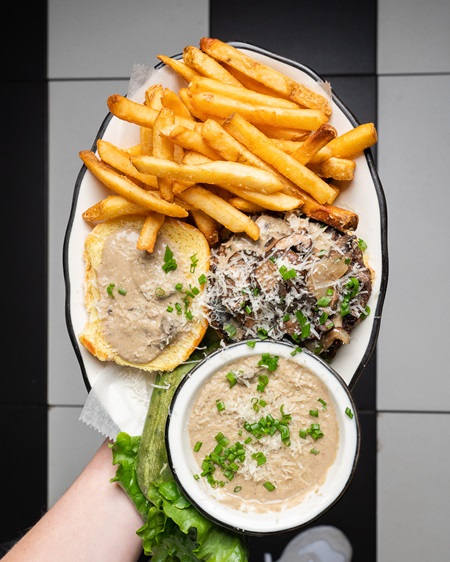 أما عن الطبق الأبرز في تلك القائمة النباتية الذي ابتُكر خصيصاً للحدث المتميز "فيغانواري" لعام 2022 هو طبق البرغر النباتي "فيغان ترافل شروم برغر". إنه قطعة فنية غنية بالمكونات النباتية، يتميز هذا الطبق الفاخر بالبرغر الشهي المصنوع من الفاصوليا السوداء والفطر داخل شطيرة خفيفة وهشة من البطاطس، مع طبقات رائعة من أشهى الإضافات لمذاق ممتع وغني بصلصة كريمة الكمأة، وفطر الكريميني إضافة إلى الكراث والبصل الأخضر لقرمشة لذيذة ومذاق طازج متوج بلاذعة جبن البارميزان النباتي الغني واللذيذ. طبق برغر استثنائي لصنع صور أكثر استثنائية تستحق النشر على "إنستغرام".
