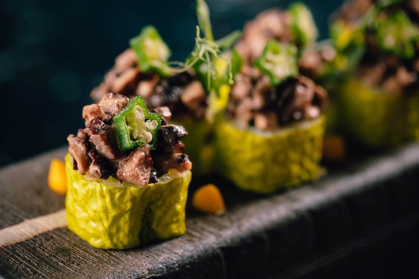 وتشمل الخيارات البارزة في قائمة "فيغانيواري" الخاصة لفّة "أمازونيا سامبا" Amazonia Samba Roll الشهيرة لدى "سوشي سامبا"، وتتكوّن من فطر الشيتاكي الذي يُخِّفف الكوليسترول، إضافةً إلى مكوّنات تقوّي المناعة مثل هريس فاكهة الكابوشا، البامية، الأفوكادو والخيار وجميعها غنيّة بالألياف والمغنيسيوم ومضادات الأكسدة إضافةً إلى الفيتامين A والفيتامين C. إنها بالفعل ترياقٌ لذيذٌ لكلّ تلك الانغماسات المترفة خلال الأعياد. أما الأطباق النباتية المتميّزة الأخرى من مجموعة أطباق "سوشي سامبا" الشهيرة فتشمل "كريسبي توفو تاكيتوس" The Crispy Tofu Taquitos الذي يحتوي على صويا الزنجبيل الحارّ وتورتيلا الذرة والسمسم، وسلطة "الذرة البيروفية" Peruvian Corn التي تحتوي على الذرة المشوية والبصل الحلو والفلفل الأحمر والأفوكادو، فضلاً عن سلطة "سيزر سامبا" Samba Caesar Salad التي تحتوي على صلصة "ميسو" من الحبق والخسّ الروماني ورشاد الريحان.
