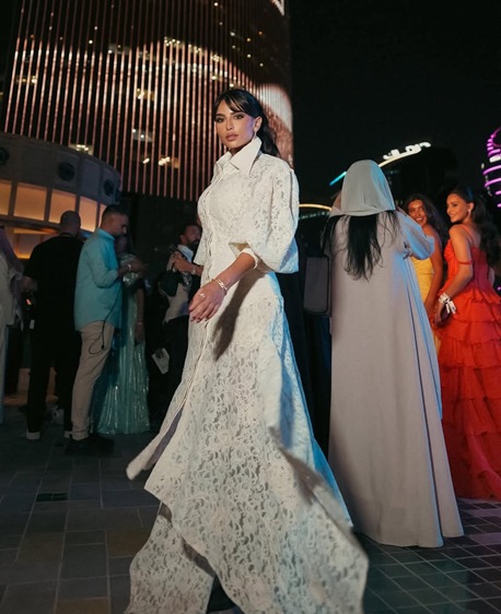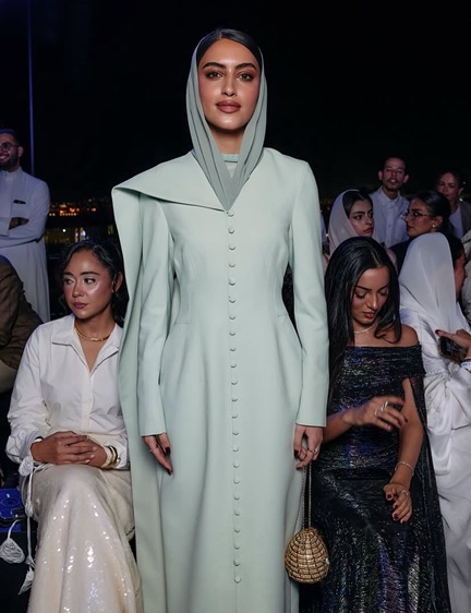 ومع هذا الزخم الإبداعي، لم يكن مفاجئاً أن يستقطب الحدث نخبة من أبرز ضيوف الموضة والمشاهير من حول العالم. فقد خطفت جورجينا رودريغز الأنظار بإطلالة أنيقة مع وشاح رأس يجسّد احترامها للثقافة المحلية، بينما حضرت المؤثّرتان العالميتان ليوني هان وتمارا كالينيك بلسمة فخمة تليق بالمناسبة. أما من العالم العربي، فكان الحضور النسائي لافتاً بمشاركة أسماء بارزة مثل يارا النملة، مريم محمد، العنود بدر، لمى العقيل، والممثلة التايلندية فاي بيرايا التي أضفت لمسة من التنوع الآسيوي إلى السجادة الحمراء.