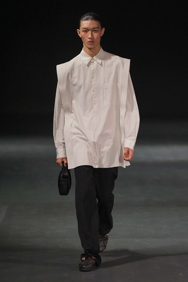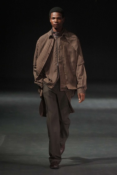 هذا الموسم، ابتعدت العلامة مؤقتاً عن طابعها العملي المعتاد لتغوص في سردية أكثر شاعرية حول الخياطة الكلاسيكية. الإطلالة الافتتاحية حدّدت الاتجاه بوضوح: بدلات مقلمة بقصّات مريحة، قُمصان بيضاء بسيطة، وأحذية لوفر منخفضة، لتبدأ بعدها رحلة إعادة صياغة مفردات خزانة الرجل التقليدية بأسلوب طبقي غني يوحي بأن الهوية تُبنى من مستويات متراكبة من التجارب.