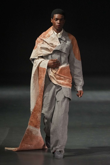 على الصعيد التقني، لعبت المجموعة على الأحجام الواسعة والتفاصيل المتحوّلة. الأقمشة لُفّت حول الجسد بطيات وانسدالات ثقيلة بدت كأنها تجسيد بصري لثقل الذكريات. لفتت الأنظار سترات بلون الصدأ مع أغطية كتف مدمجة، ومعاطف مستوحاة من الطابع العسكري، إلى جانب أوشحة مدمجة استُخدمت كأغطية رأس في إطلالات الرجال والنساء على حد سواء، ما عزّز الإحساس بالوحدة البصرية.