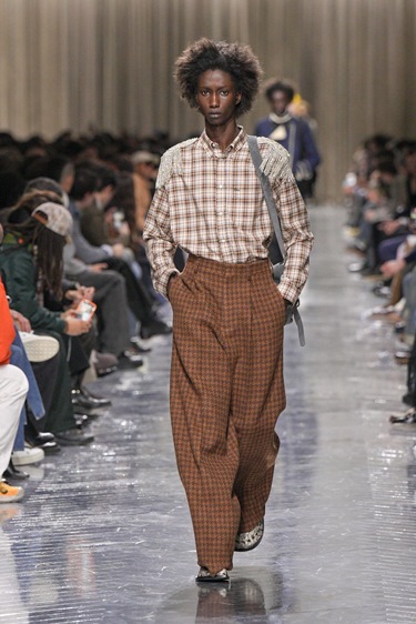 تتنقل السردية عبر لحظات انتقالية في تاريخ الخياطة، تلك الفترات التي انهارت فيها القوالب التقليدية لتفسح المجال أمام أشكال جديدة. أندرسون يتخيل حواراً بين نزعة بواريه التنكرية وحاجة الرجل المعاصر إلى التعبير عن شخصيته. الإكسسوارات لعبت دور إشارات اجتماعية واضحة، خصوصاً الياقات المكشكشة التي رافقت الدعوات. بأسلوبها المائل والمتعمّد، انتقلت هذه القطع من رمز أرستقراطي إلى بيان فوضوي، يؤكد أن الموضة، في جوهرها، انعكاس للذات. معطف الذيل يتحول إلى كنزة محبوكة، والسترة البسيطة تتممدد لتصبح فستاناً طويلاً، من دون أن تفقد المجموعة تماسكها.