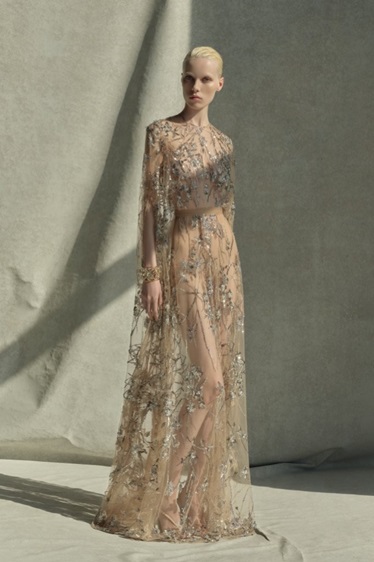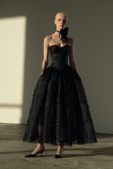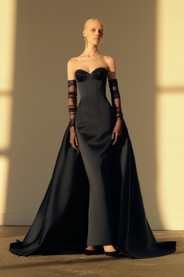 اعتمدت المجموعة على توازن دقيق بين الهيكلية الصارمة والخطوط الانسيابية. بعض الإطلالات جاءت بقصات واضحة تكاد تلامس الطابع المعماري، خاصة في السترات والمعاطف المصممة بخطوط محددة تعزز حضور الكتفين والخصر. في المقابل، ظهرت أقمشة خفيفة مثل الموسلين والحرير لتخفف من حدة البنية، حيث انسابت الفساتين بطبقات شفافة تزينها زخارف نباتية دقيقة.