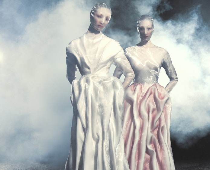 تمحورت المجموعة حول البحث المادي، حيث برز شمع العسل كعنصر أساسي، استُخدم لتغليف الأقنعة والملابس، مانحاً الأسطح مظهراً متشققاً أقرب إلى الأحافير. إحدى أبرز الإطلالات تمثّلت في فستان حداد فيكتوري مكسو بالشمع، جمع بين ثقل التاريخ وتشويه الملمس. في المقابل، ظهرت البورسلان كفكرة موازية، إذ صيغت منها فساتين نحتية عبر تجميع شظايا دقيقة، بينما تُرجمت الفكرة في الأزياء الجاهزة عبر طبعات وتدرجات لونية تحاكي لمعان السيراميك.