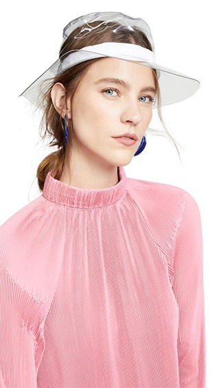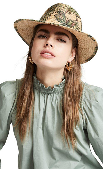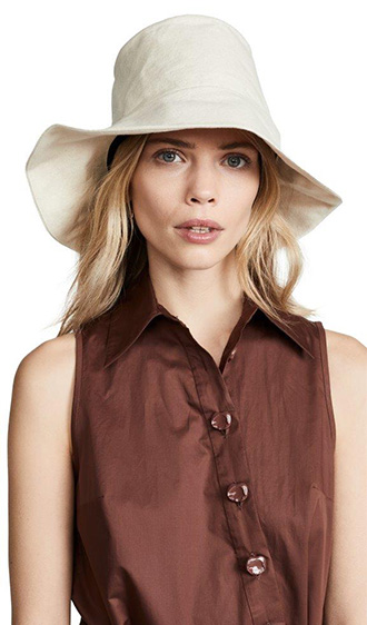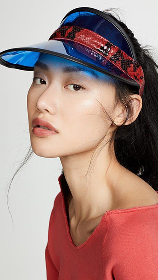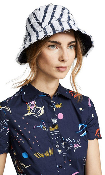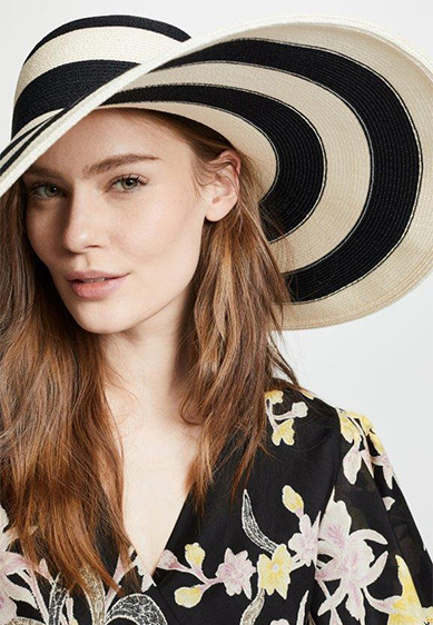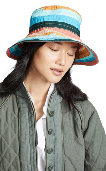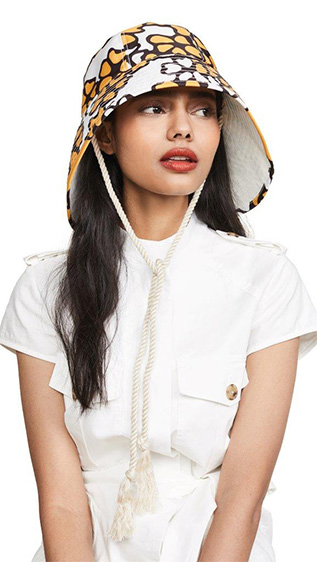الـ BucketHat تأتينا بعدة تصاميم منها الدنيم ونقوش الـTie Dye، وكذلك قبعات Visors الكاجوال، وإذا كنتِ تُفضّلين خيارات أكثر أنثوية وكلاسيكية على طريقة هوليوود القديمة ننصحكِ بقبعتي Eugenia Kim الأولى باللون الأبيض تزدان بقصاصات الأزهار على طريقة الستينيات، والأخرى قبعة التوربان باللون الأسود.