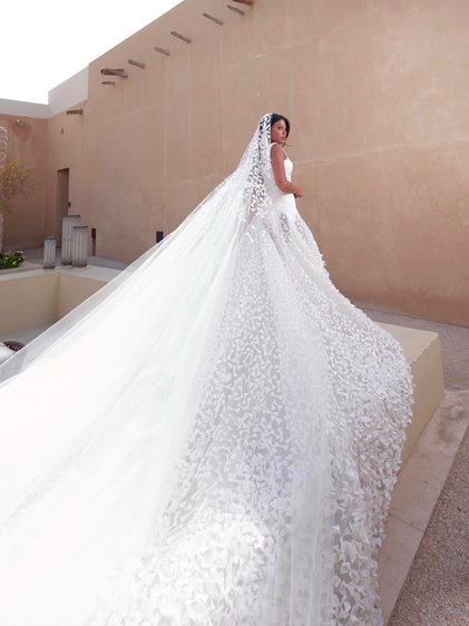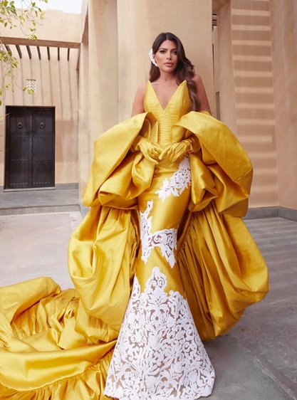 للوهلة الأولى، اعتقدنا جميعاً أنها قد فعلتها أخيراً وقررت الزواج، لكن تبيّن لاحقاً أن هذه الصور ليست سوى جزء من تعاونها مع علامة Esposa لفساتين الزفاف والمناسبات. فقد تألقت العنود بأربعة فساتين سهرة، من بينها فستان أصفر ضيّق يبرز القوام، مزوّد بكاب مرفق من القماش المزموم، وفستان طويل ضيّق مغطى بالكامل بالترتر والباييت اللامع. أما فستان الزفاف الذي ارتدته، فبدا ساحراً بقصّته الناعمة وتنورته الشفافة الواسعة، مع طرحة طويلة للغاية زادته فخامة.