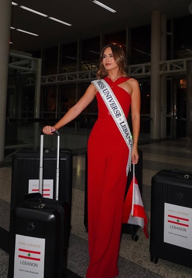وقد نشرت سارة العديد من الصور على إنستغرام تظهر فيها وهي تحمل العلم اللبناني في مطار بيروت الدولي، أتبعتها بصور أخرى تظهر فيها عدد من الملكات المشاركات في المسابقة بعد وصولها إلى بانكوك.