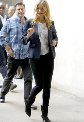 وفي هذا الإطار، حلّت الممثلة الشقراء ضيفة على عاصمة الضباب لندن، حيث رُصدت أثناء دخولها استديوهات إذاعةBBC البريطانية إلى جانب الممثل "جايسون سيغيل" الذي شاركها التمثيل في الفيلم.