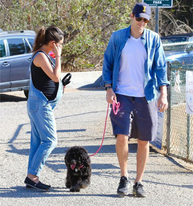 بالصور: نزهة تجمع ميلا كونيس وآشتون كاتشر... وكلبهما! | Gheir
