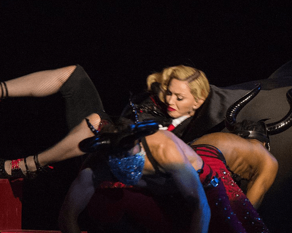 شاهدي بالفيديو كيف وقعت مادونا على المسرح | Gheir