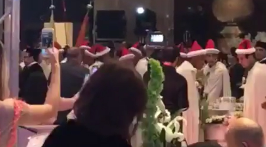 واستقل العريس والعروسة الهودج المغربي اثناء حفل الزفاف وتكلف الحفل اكثر من 5 مليون ريال سعودي.