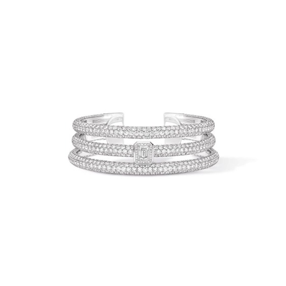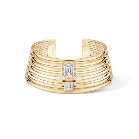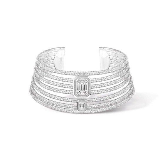 علاوةً على التصميم الجريء، تضرب دار ميسيكا دائماً بالرموز السائدة في عالم المجوهرات عرض الحائط، مرّة تلو الأخرى، من خلال نوع القطع المطروحة. وهذه المرّة، اختارت أن تكمّل هذا الطقم الجريء مع خلخال وسوار لليد.