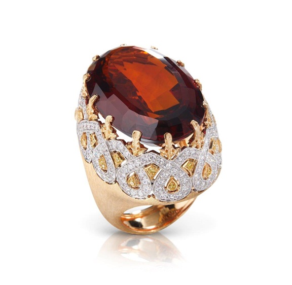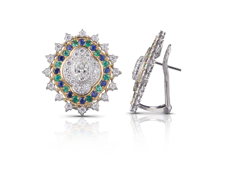 هذا الإلهام من الفسيفساء البيزنطية يجسده الماس المرصوف والأحجار الكريمة الملونة التي تلتقط الضوء وتعكسه في روعة كاملة. الأشكال حديثة وغير متوقعة، العناصر الزخرفية المتكررة متناغمة وإيقاعية، كما وأن مجموعات الألوان تخلق تأثيرات جذابة وأناقة مدهشة.