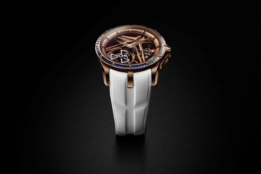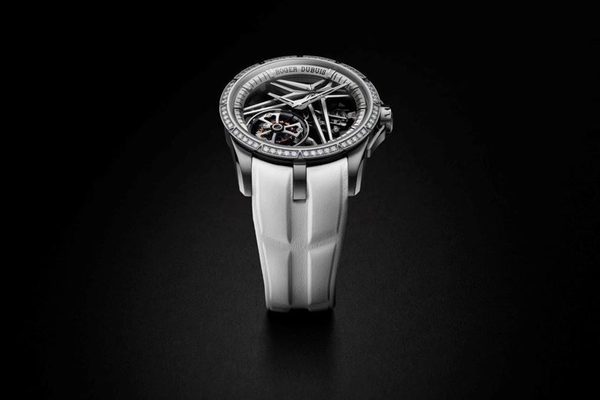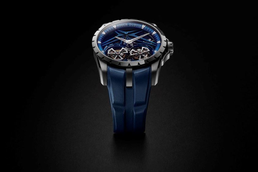 صُمِّمت هذه الساعة من معدن عالِ المقاومة عادةً ما يُستخدم في الصناعات المُتطوِّرة، وتضم توربيوناً مزدوجاً صعب التصميم، وتبرُز تكنولوجيا ™Hyper Horology الحصرية من روجيه دوبوي في أقوى حالاتها.