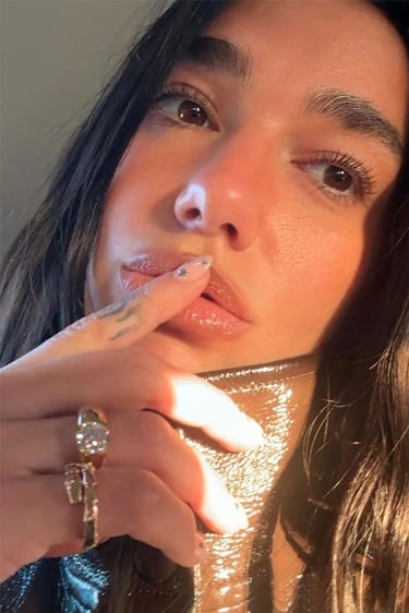 ظهرت دوا ليبا بخاتم ذهبي عريض مع حجر ألماس لافت، يعكس ميولها إلى الأسلوب القوي غير التقليدي. الخواتم العريضة ستتصدّر المشهد، خصوصاً لمن تبحث عن خاتم يتحول إلى statement يرافق الإطلالة اليومية.