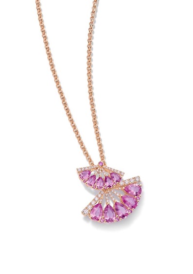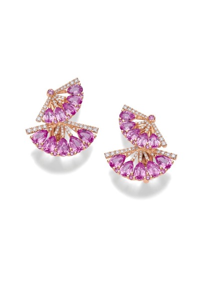 تتكون الأقراط من قطعتين على شكل التنورة المنفوشة لراقصة الباليه، تميلان عن بعضهما البعض لتتقاطعا في رقصة باليه ثنائية تبعث إحساساً بالرشاقة والحرية. وقد صنعت الأقراط من الذهب الوردي عيار 18 قيراط، ورصّعت بالسافير الوردي بقطع كمثري وألماس برّاق بقطع بريلنت، لتتألق بتصميم يشع بحس الرشاقة والرقي. وتتطابق القلادة مع الأقراط بنفس التصميم، لتتلألأ على إيقاع رقصة من بريق الضوء، كما هو الحال في جميع إبداعات مجموعة (L’Heure du Diamant).