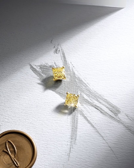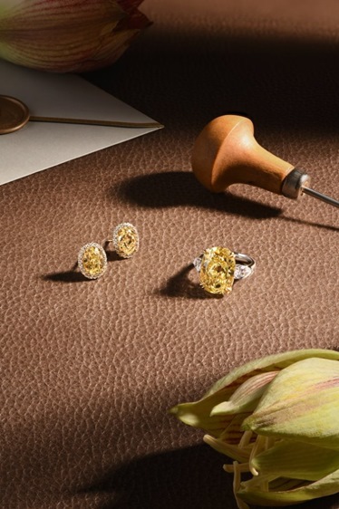 حظي الألماس الأصفر الطبيعي ذو اللون الخيالي باهتمام خاص، إذ يشير الوصف الشعري "خيالي" إلى وجود درجة لونية صفراء، تُحدَّد شدتها وفق خصائص اللون من حيث الفاتح والمشبّع والساطع. وتأتي هذه الأحجار بدرجات لونية زاهية وقوية، قد تميل أحياناً إلى تدرُّج برتقالي خفيف. ويعود اللون الأصفر الغني إلى وجود النيتروجين أثناء تكوّن الماس، إذ تكفي ذرة نيتروجين واحدة لكل 100 ألف ذرة كربون لإضفاء هذه الدرجة اللونية الصفراء على الحجر.