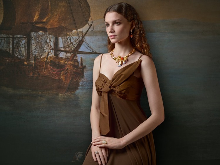 وكأنها رواية شيّقة مليئة بالمغامرات، تجمع مجموعة مجوهرات "تريجر آيلند" (جزيرة الكنز) من فان كليف أند آربلز ما بين مناظر العالم الطبيعية وكنوزه، في رحلةٍ تتكشف معالمها على مرّ ثلاثة فصول. في الفصل الأول، تتولى الدار قيادة الدفة، مستمدّةً الإلهام من عقدة البحّارة، بالإضافة إلى مجموعةٍ منوّعة من الأدوات المستوحاة من فنّ الملاحة. في هذا الفصل أيضاً، تحتفي الدار بالمحيط في تدرّجاتٍ من اللون الأزرق، تتراوح من الفيروزي إلى الأخضر الزمرّدي، وتجسّد انعكاسات الشمس في حرارة العصر، أو انعكاس ضوء القمر على المياه الهادئة. أما الفصل الثاني فأشبه بقصيدة تترنّم بالطبيعة، وهي من المواضيع العزيزة على قلب فان كليف أند آربلز. هنا، توصف الطبيعة بتنوّعها ووفرتها فتطالعنا أصداف بحرية بألوان قوس قزح، وزهور رقيقة، وأشجار مهيبة تتألق بلوحة من الألوان الخلاّبة. وتختتم الرواية في فصلٍ ثالثٍ وأخير يحكي قصة رحلة بحث حقيقية عن كنوز العالم—من روائع ما قبل العصر الكولومبي إلى عجائب آسيا—حيث تنبض الحياة في إبداعات استُلهمت من آفاق بعيدة.